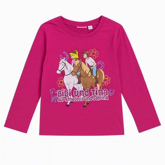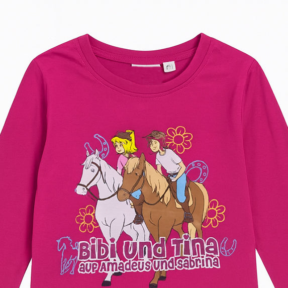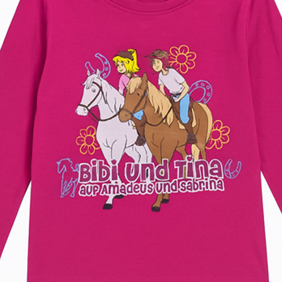 B&T Girl Shocking Pink Bibi Und Tina Character Printed Full Sleeves Shirt