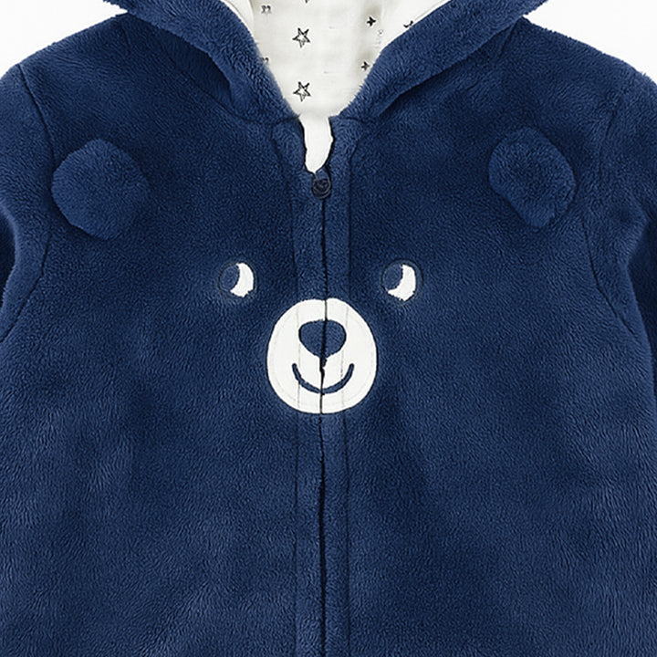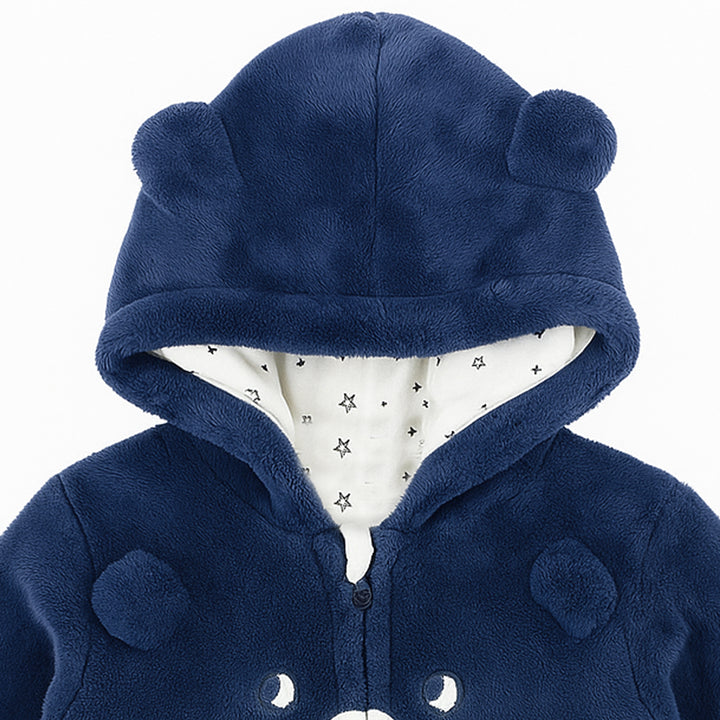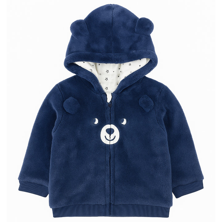 Boy Blue Bear Face Embroidery Fleece Hoodie