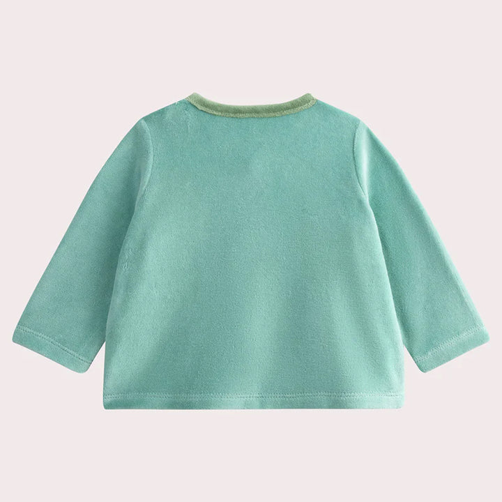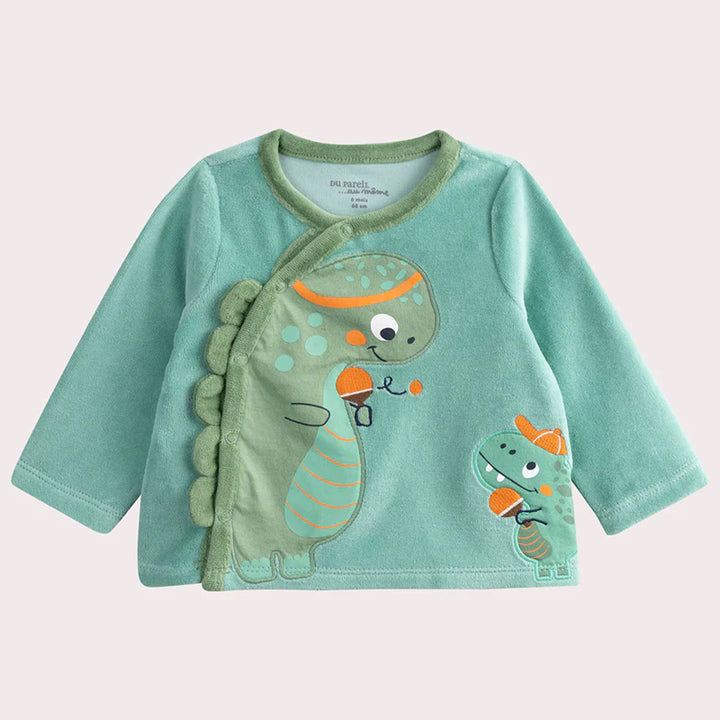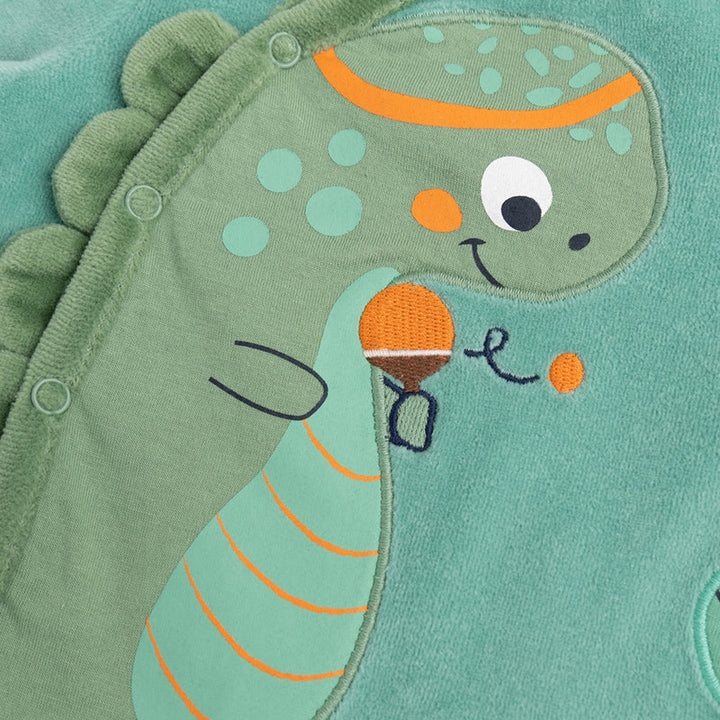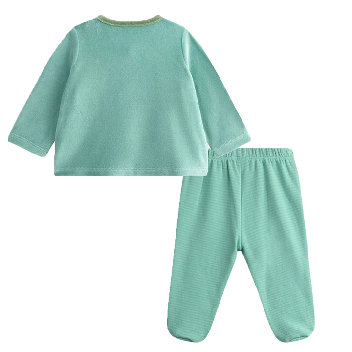 Boy Sea Green Embroidery Dino With Lining Pajama Two Piece Set