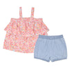 CRKS Girl White Floral Printed Top With Blue Short