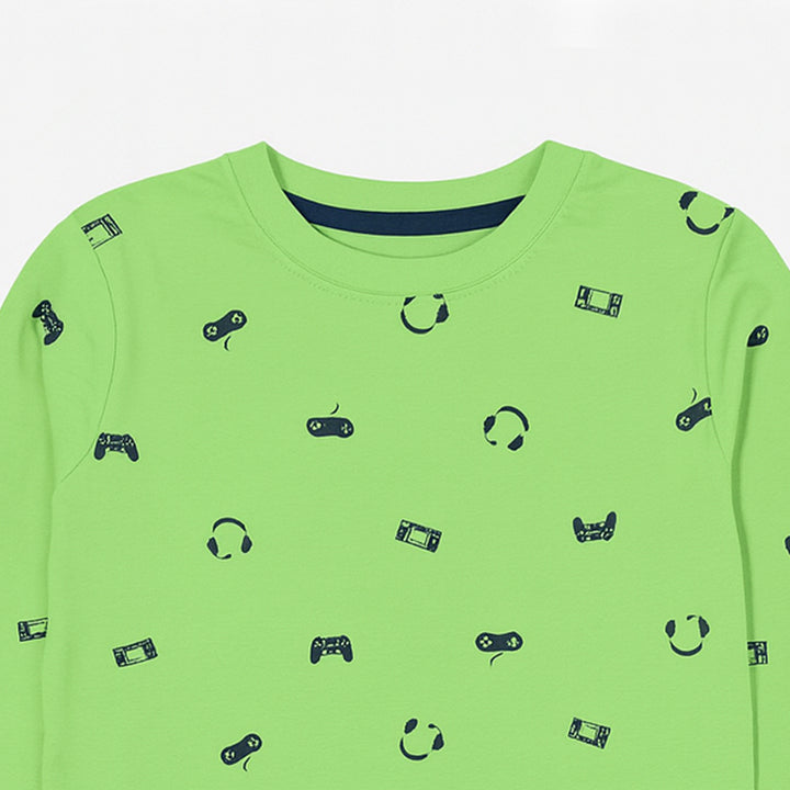FF Light Green Gaming Control Printed Full Sleeves Shirt