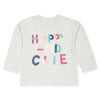 Girl Grey Happy And Cute Printed Shoulder Button Long Sleeves T-Shirt