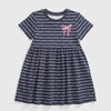 Girl Pink Bow Printed Navy Blue Frock