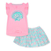 Girl Pink Top Shell Sequence Two Piece Set