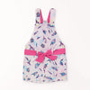Girl White Cotton Tie & dye Sparrow Printed Dungaree With Pink Cotton Belt