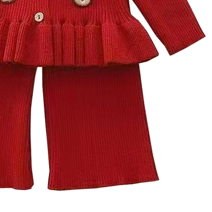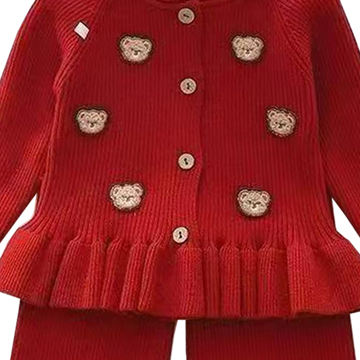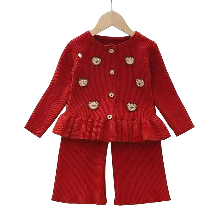 Girls Sweater Stuff Bear Embroiedry Two Piece Set