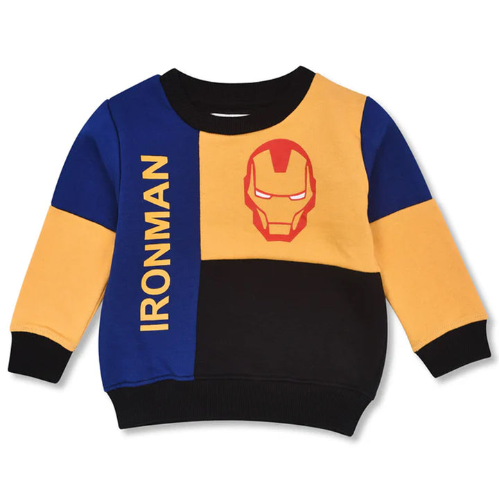 KC7 Boy Black Color Ironman Character Inner Fleece Sweatshirt