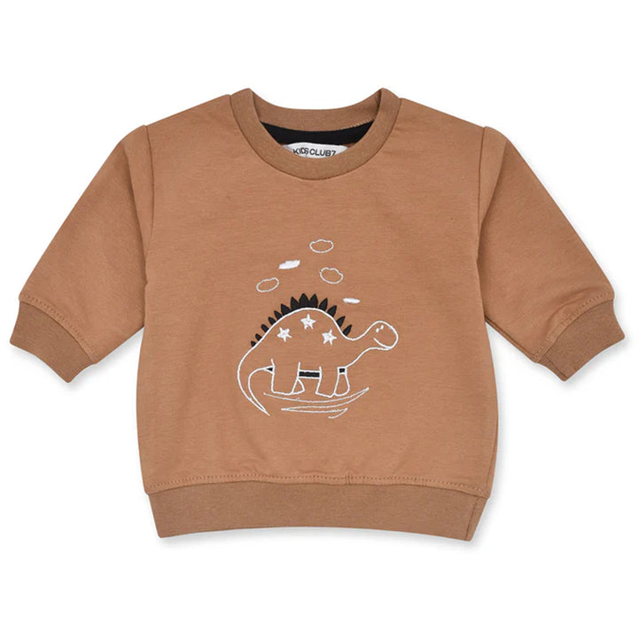 KC7 Boy Brown Color Dinosaur Embroidery Sweatshirt