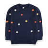 A fun to wear sweater dotted with multi colored Pom Poms. it's a perfect style for school or parties.