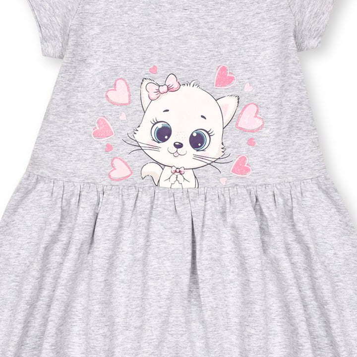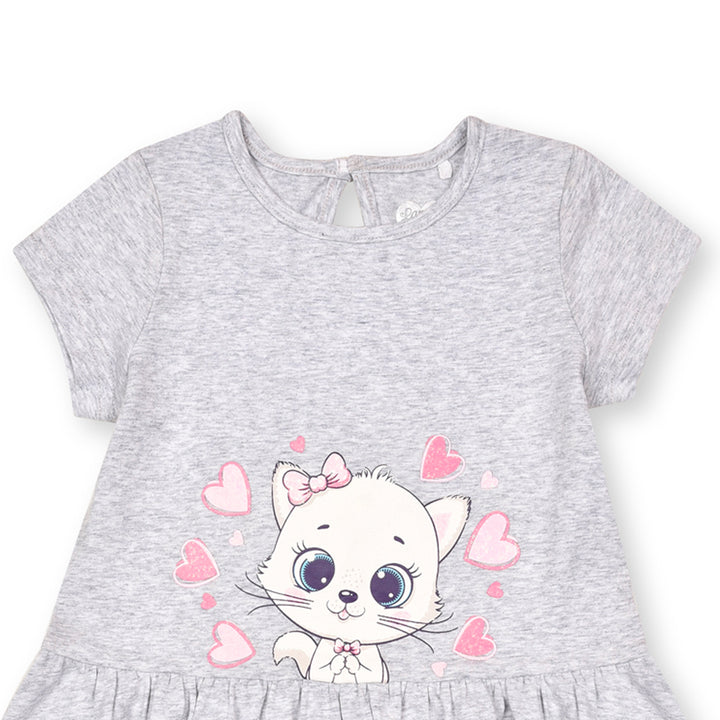 Lan Son Girl Grey Cat Printed Top Frock