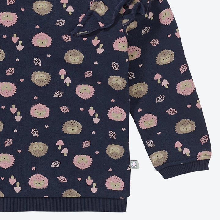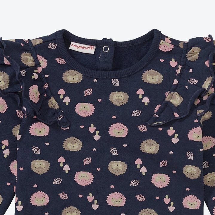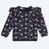 LGND Girl Navy Blue Frill on Shoulder Face Printed Inner Fleece Sweat-Shirt