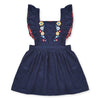 MC Girl Blue Corduroy Dungaree Frock Flower Embroidered