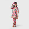 MINI CLOUD Flower Printed Neck and Sleeves Embroidery With Trouser Two Piece Set