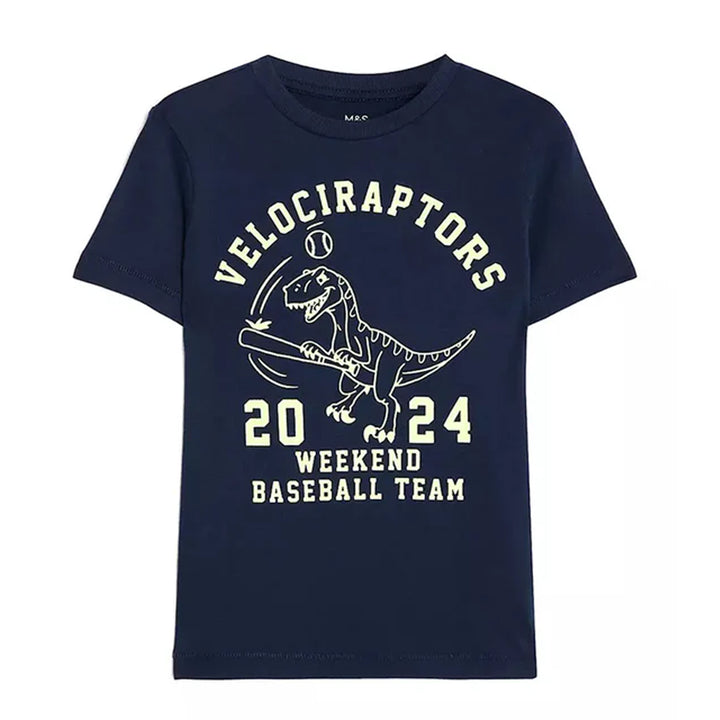 MS Boy Navy Blue Dinosure Printed T-Shirt