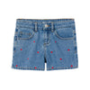 N IT Girl Red Heart Embroidery Denim Blue Short