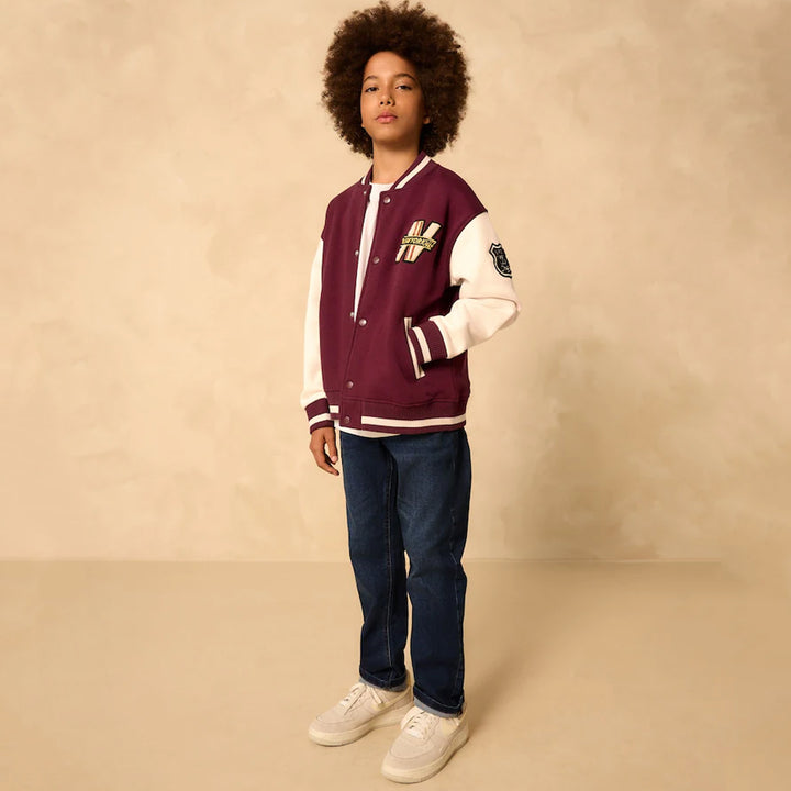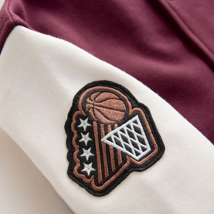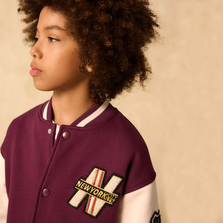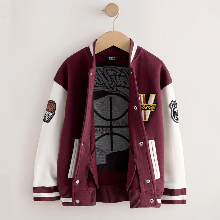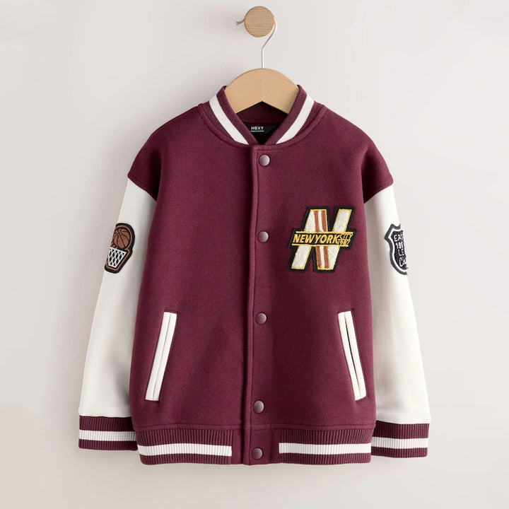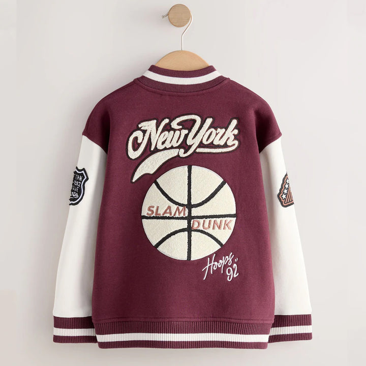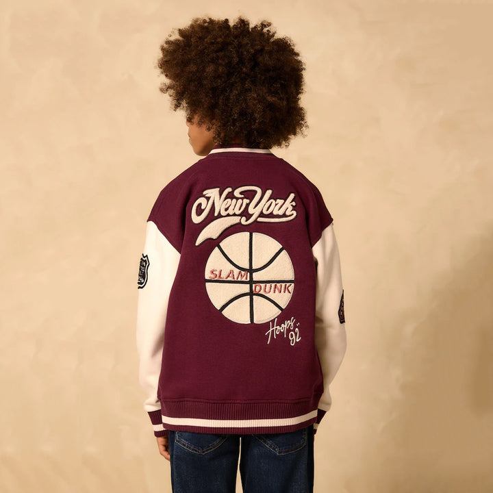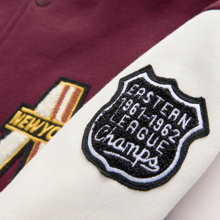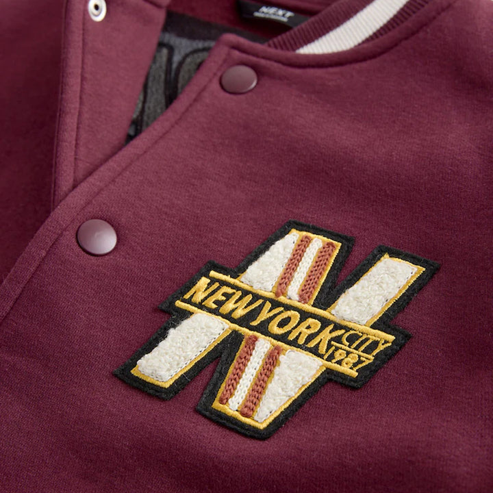 NXT Boy Maroon New York City Patch Down Shoulder Baseball Jacket