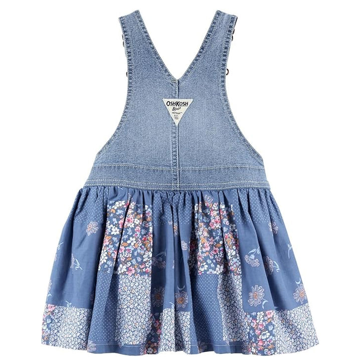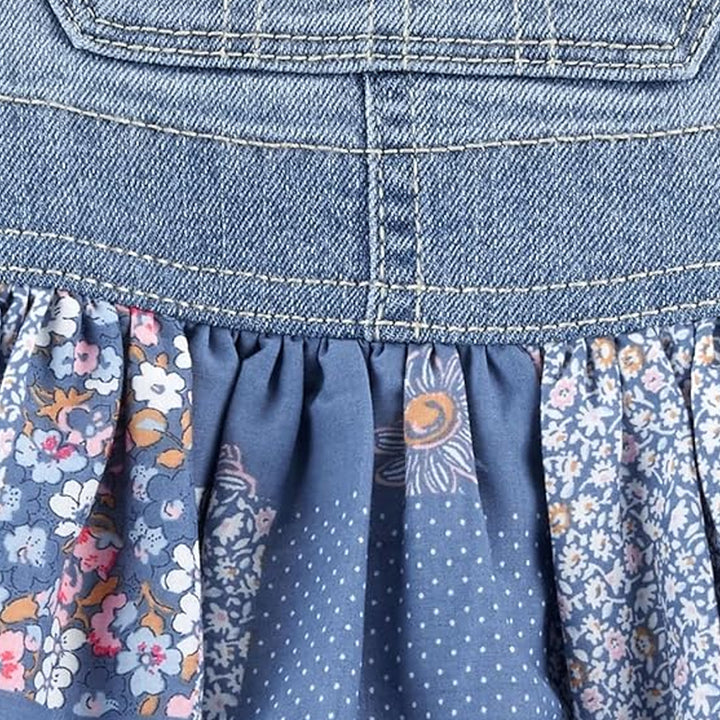 OSK Girl Denim Blue Floral Printed Dungaree