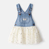 OSK Girl White And Blue Star Printed Fancy Dungaree