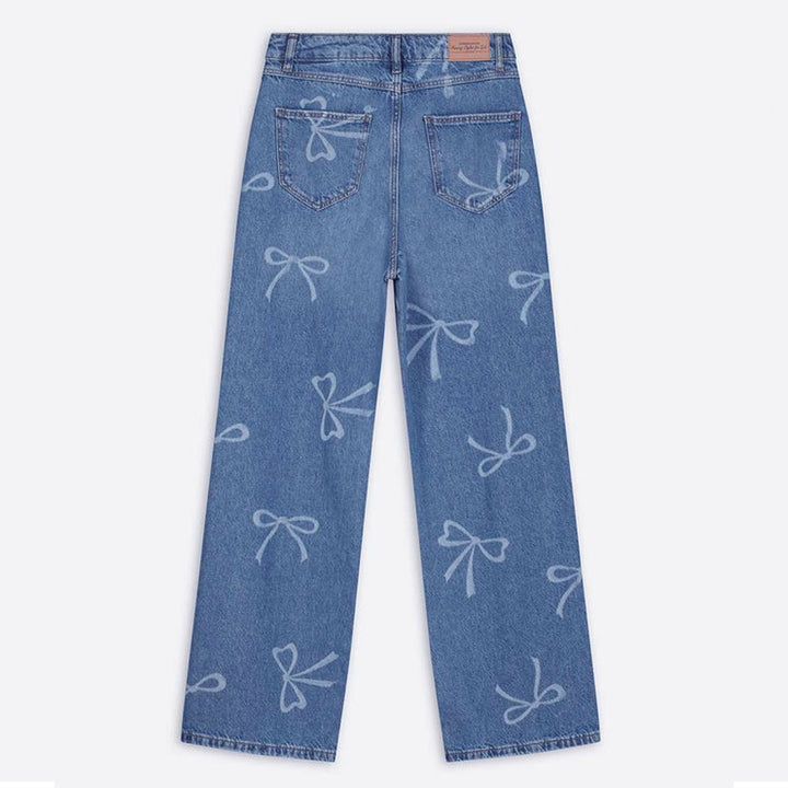 PG OE YG Girl Denim Blue Bow Printed Palazzo