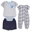 RO BEEZ Boy Grey Dog Printed Romper With Green Lining Body Suit And Blue Short