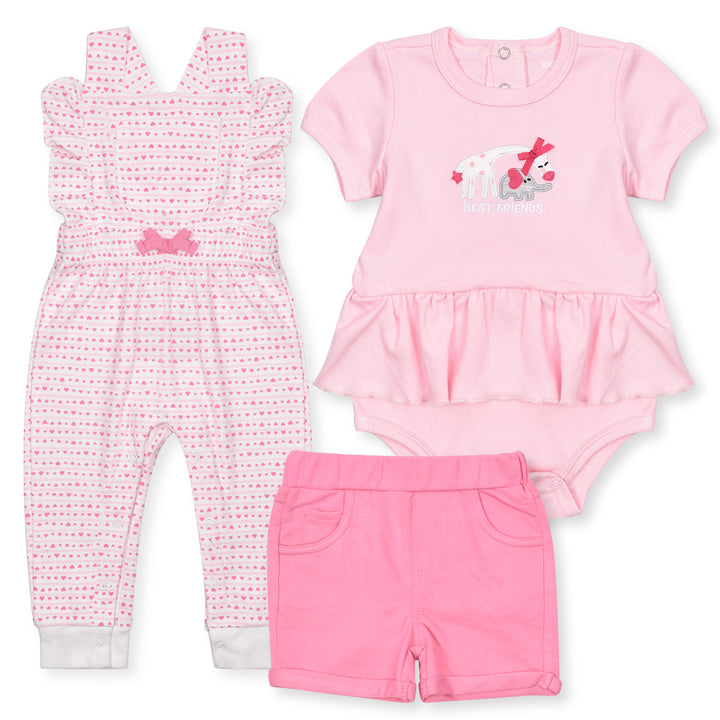 RO BEEZ Girl Pink Romper Frock With Heart Printed Dungaree And Pink Short