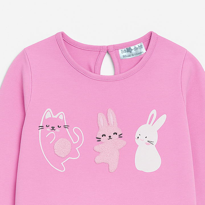SC Girl Pink Bunny Printed Full Sleeve T-Shirt