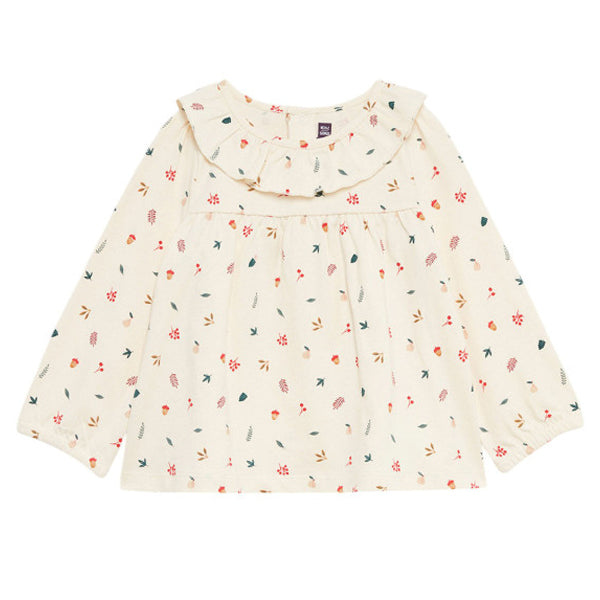 SM Girl Off-White With Multi Flower and Leaf Printed Top Frock