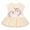 Yellow Girls Unicorn Embraided Fancy Frock With Glitter Net
