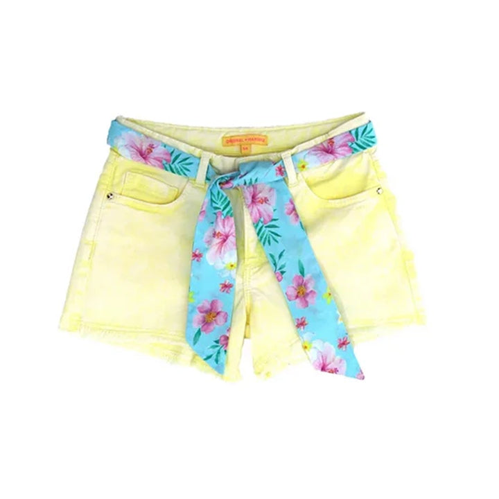 Yellow tie and dye Shorts with belt