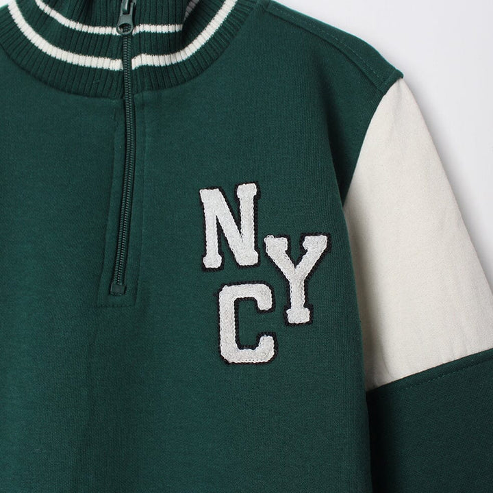 YFK Boy Green Inner Fleece NYC Patch Sweat shirt
